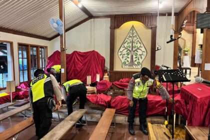 Sat Samapta Polres Klaten melaksanakan kegiatan sterilisasi gereja dalam rangka pengamanan perayaan Hari Natal Tahun 2025 di wilayah hukum Polres Klaten, Rabu (24/12/2025). Kegiatan ini dilakukan seba...